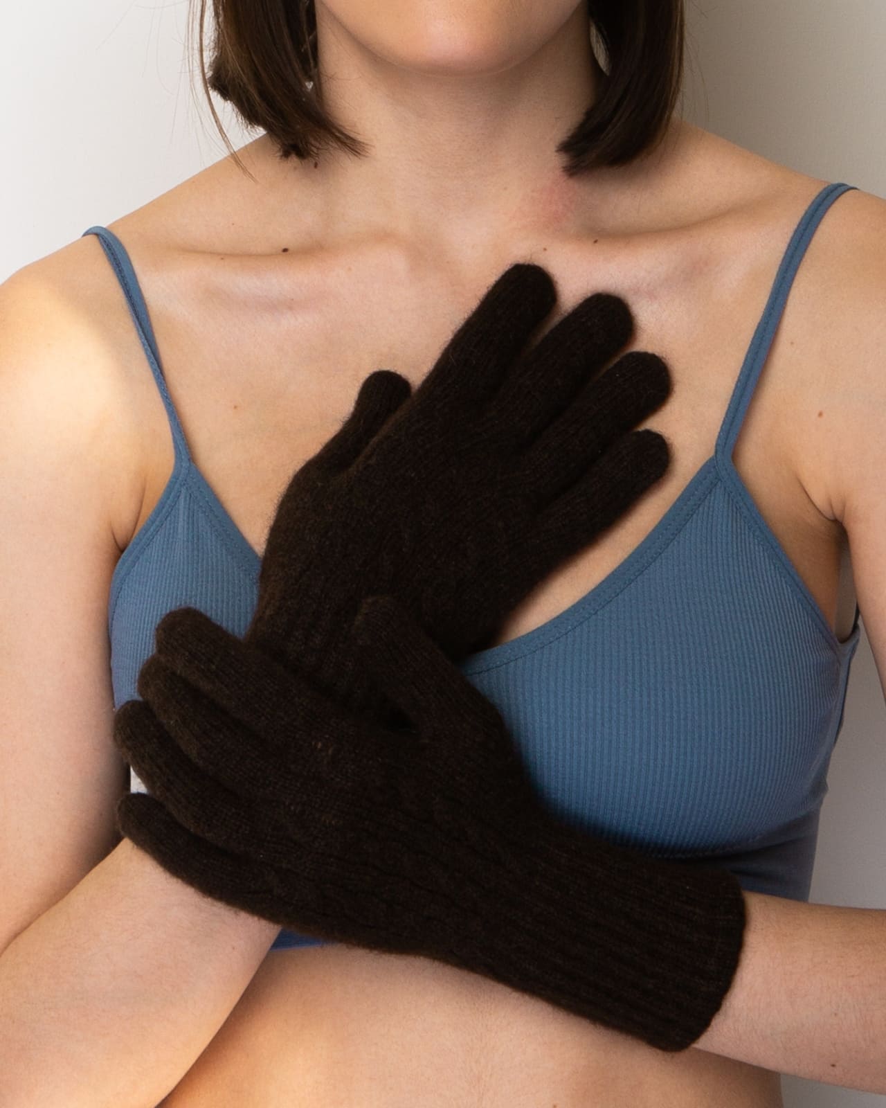 Модель выполнена с акцентом на фактурную вязку «косы», которая создаёт объёмную текстуру и делает перчатки визуально более выразительными. Классический узор подчеркивает премиальность изделия и добавляет образу элегантности.