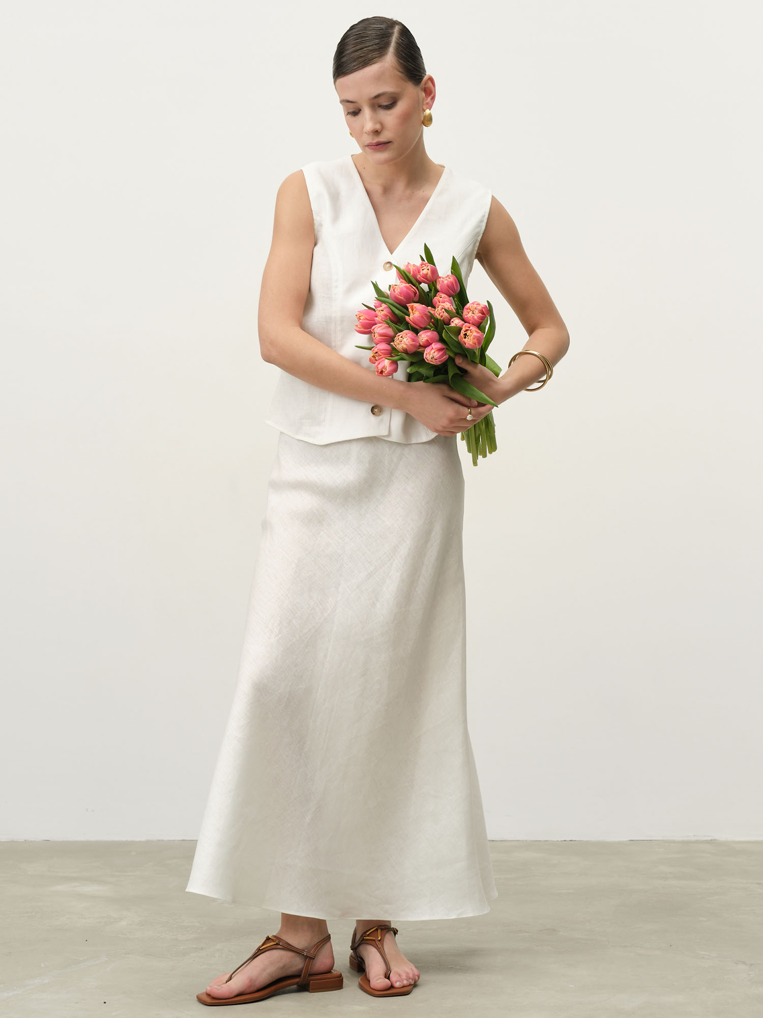 Жилет льняной 7025 айвори