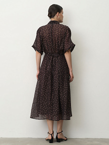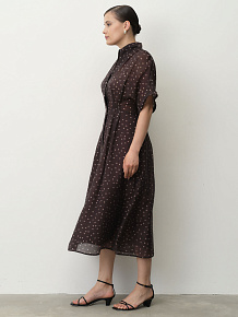 Свободный силуэт с длиной миди и короткими рукавами. Модель с акцентом на легкость и плавные линии, создающие изящный образ.