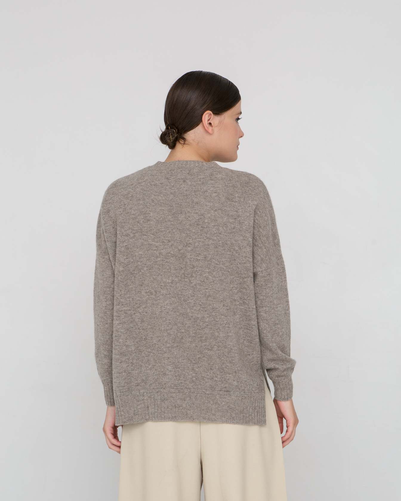 Модель выполнена в минималистичном стиле с круглой горловиной и длинными рукавами. Лаконичный крой подчёркивает естественную фактуру материала и делает джемпер универсальным элементом базового гардероба.