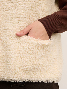 Аккуратная обработка горловины и пройм, мягкая фактурная вязка по всей поверхности изделия. Лаконичный силуэт без лишних элементов делает жилет универсальным.